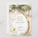 Celebrate your little one’s magical milestone with this whimsical fairy first birthday invitation. Adorned with soft watercolor sweet fairy standing by an old big tree. Details of stars and the moon creates a dreamy enchanted forest vibe. With elegant fonts, a soft green and ivory palette, and a light, airy style, it sets the tone for a truly charming and magical celebration.
