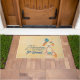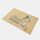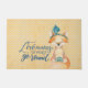 Whimsical front doormat features "Love makes the world go round" quote in modern script with adorable Boho fox on distressed chevron pattern background