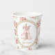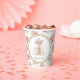 Boho baby shower paper cups with cute watercolor fox and tee pee on a pretty pink and gold floral background. You can add the text of your choice.
