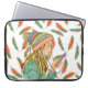 Teen girl wearing a boho hat with feather background, laptop sleeve.