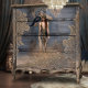 Bohemian Glam, Lady standing & a Peacock Pheasant, Mixed Media Digital Embellished Portrait, Furniture Decoupage