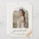 Announce your graduation to family and friends with this customizable boho graduation announcement card. It features an arch photo frame with a faux gold glitter feather. Personalize by adding a photo, name, school and other details. This photo graduation announcement is available in other cardstock.