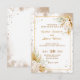 Invite guests with this stunning Bohemian wedding invitation. The design features beautiful pampas grass, dried palm fans, creamy white orchids, and a sparkling gold glitter frame. The soft neutral watercolor background gives it a chic, modern aesthetic, making it perfect for a desert, beach, or luxurious boho-themed wedding.