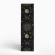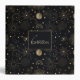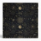 This boho celestial space elements doodles aesthetic design adds a powerful spiritual energy to stylish decor or any special event. A cute mystical space drawing doodles pattern composed of faux gold foil sacred geometry, mandala flower, the sun, the full moon, a crescent stage moon, a protective eye, diamonds, stars, and other geometric shapes doodle art, on a dark navy-blue and black cloudy sky, universe nebula and distant golden planets.