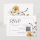 Boho Golden Yellow Meadow Flowers White QR Code RSVP Card