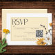 Celebrate your love story bathed in the warm glow of a golden meadow. Our whimsical wedding response card with a QR code features vibrant watercolor bouquets. Sun-kissed yellow gold, buttery yellow, and golden brown blooms mingle with delicate white daisies, white flowers and elegant yellow lilies. Playful accents of dried thistles and soft beige tan grasses add a touch of rustic charm, while sage green foliage and sprays of black berries offer a touch of whimsy. Playful yet elegant fonts perfectly complement the design, setting a light and joyful tone for your special day. This enchanting suite captures the essence of a summer's end meadow, inviting your guests to share in the joy of your love. Created by Simply Farmhouse Press.