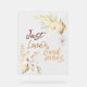 Bring on the good feelings that surround this day of love and joy! Boho floral bouquets decorate the corners with watercolors in neutral shades. Colorway is rust brown, soft white, and tans. Florals depicted are dried palm leaves, grasses, and white orchids.