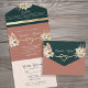 Celebrate your love with this elegant boho all-in-one wedding invitation, blending modern charm with rustic floral beauty. Featuring a warm terracotta and deep green color palette, the design is adorned with delicate blush and ivory watercolor flowers, dried pampas grass, and a romantic gold rope heart. The back includes space for RSVP details and additional wedding information, while the front highlights your names in handwritten script. Perfect for fall, bohemian, rustic, or desert-inspired weddings.