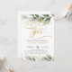 Boho greenery eucalyptus gold leaves she said yes invitation
