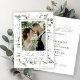 Watercolor green foliage eucalyptus greenery leaves frame and a classic chic script lettering calligraphy making a beautiful modern photo wedding save the date card.