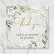 Elegant boho design for wedding favor tags features Watercolor hand painted white flowers roses peonies mixed sage eucalyptus greenery and woven into faux gold frame , combined modern script lettering. Modern script lettering.