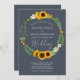 Boho Greenery Sunflower Royal Blue Wedding Invitation