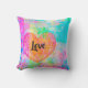 Several layers of textures and photographs were digitally merged to create this colorful expression of love. Colors include pink, lime green, yellow, red, orange, purple, blue, aqua, turquoise and more. The image is reversed on the back, making these throw pillow perfect to go on both ends of a sofa. The text and font can be edited to suit your needs.