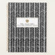 A teacher planner featuring a boho inspired black and white herringbone design on front and back. Front features custom text under illustration of a tan apple.