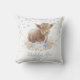 Boho Highland Cow Blue Gold Floral Baby Boy Throw Pillow