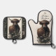 Boho Highland Cow Oven Mitt & Pot Holder Set