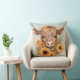 Boho Highland Cow Sunflowers Sage Green Throw Pillow