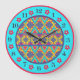 This design is a Hawaiian inspired, abstract, tribal pattern in bright colors including turquoise, purple, orange, yellow and pink.