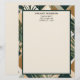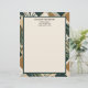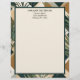 A background of leaves and palm fronds superimposed on green, brown, and tan geometric shapes creates a very sharp and organic professional letterhead. There is plenty of room for a small logo to the right or left of the text at the top, if the shadow monogram behind the text is not wanted. Very eye-catching design!