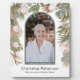 A chic boho plaque which can be personalized with an arch photograph of your loved one as well as their name and can be displayed as a welcome sign for your Celebration of Life or funeral service, or at the guest book table. Alternatively, this beautiful remembrance plaque can be displayed in your home. Design features watercolor dried leaves, pampas grass, palms and pink orchid blossom.