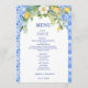 Boho Lemon Blue Mediterranean tile Italian Wedding Menu