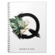 Customizable letter Q monogram notebook featuring watercolor tropical monstera leaf, faux gold foil leaf and black watercolor brush accents. Personalize this tropical monogram notebook by your name or other details. This boho letter Q monogram notebook will be perfect as a gift. Other letters are available.