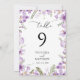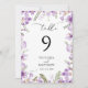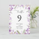 Boho Lilac Floral Wedding Table Number