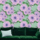 Bring the tranquility of a spring garden indoors with this stunning wallpaper featuring large, stylized watercolor aster flower blooms. The soft, dusty lilac and lavender purple petals are beautifully contrasted against a soothing soft mint green background, creating a fresh, pastel color palette. The detailed, hand-drawn green foliage weaves throughout the blossoms, emphasizing the botanical and elegant floral style.