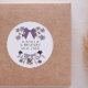 Boho and rustic wedding favor sticker featuring hand drawn illustration of bows and flowers in lilac colors.