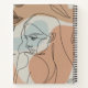 Boho line art woman with leaves and blue and orange shapes pattern.