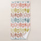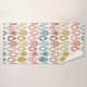 This towel set has a gold washcloth, a brown hand towel, and a bath towel with a Boho design of pointy ovals in Boho shades pf pink, blue, gold, and brown.