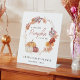 Welcome your guests with the cozy, rustic charm of this "Little Pumpkin" pedestal sign! The design features beautiful watercolor pumpkins and an elegant fall floral wreath in soft terracotta, mauve, and orange shades. This sturdy, freestanding sign is a gorgeous, gender-neutral centerpiece that sets a warm, inviting tone for your autumn baby shower.