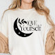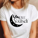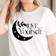 Embrace self-love and positivity with this beautiful boho-inspired "Love Yourself" shirt. Featuring a minimalist crescent moon with delicate stars and a leafy accent, this design encourages self-care and inner strength. The black and white aesthetic adds versatility, allowing it to be paired with any outfit while still making a bold statement. Ideal for those who value personal growth and empowerment, this shirt serves as a daily reminder to prioritize self-love. Add a touch of boho magic to your wardrobe and wear your inspiration proudly!