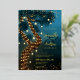 Boho magical enchanted forest woodland wedding featuring a magical rustic tree with fairy string lights all around and burning shimmering candles on a dark blue mountains forest ombre gradient watercolor gradient. Perfect boho autumn, fall and winter enchanted wedding theme with woodland illustration and modern brush script font.