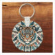 Beautiful boho style mandala with tiger and feathers in blush pink, teal and earth tones.