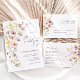Plain white envelopes are included with paper invitations and will come to fit the invitation size you select. If you don’t need the envelopes, you may choose to not receive them by selecting the dropdown below "Envelopes" and choosing "None." If you’d like to have a design on your envelopes, you can browse all of these available envelopes to find the design that complements your Boho Spring Colorful Wildflower Wedding Invitation.