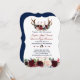 Boho Merlot Navy Blue Floral Antlers Wedding Invitation
