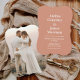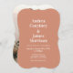 This personalized invitation template is fully customizable to suit any wedding theme, from a breezy beach ceremony to a chic late summer or fall celebration. Featuring a palette of cream, peach, coral, orange, rust, copper, and terracotta, this design captures the essence of a rosey sunset or citrus-themed event. It's perfect for those planning their nuptials during the warm and festive months of June, July, or August and embodies the spirit of boho disco weddings.