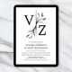 Boho Minimal Black and White Leaf Monogram Wedding Invitation