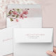 Elegant minimalist typography script bride and groom's names return address personalized wedding envelope in simple dusty pink spring summer garden color with pink blush watercolor floral botanical liner.