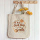 Whether you're looking for a cute eco-friendly tote or a thoughtful gift, this 'Good Day to Smile' bag is a must-have accessory to brighten any outfit.