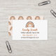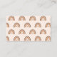 This cute business card for teachers features a boho modern rainbow and apple in muted brown colors. Personalize the front of the card with the teacher's name, title, phone number, and email. The back of the card has a beautiful rainbow pattern on a pastel background.