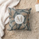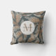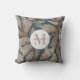 An earthy Boho style monogrammed throw pillow with script name on a pretty earthy rustic smoky gray light brown leaf pattern. A warm accent pillow with muted colors.
