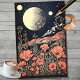 Unleash your artistic spirit with our decoupage paper featuring a boho moon and floral design in striking block print style. Against a black background, it adds a touch of mystique and elegance to your creative projects.