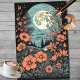 Unleash your artistic spirit with our decoupage paper featuring a boho moon and floral design in striking block print style. Against a black background, it adds a touch of mystique and elegance to your creative projects.