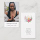Boho Moon Crystals Feathers pink Flowers vertical photo business card with white background.