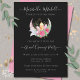 Boho Moon Crystals Feathers Flowers Business Event , Grand Opening, Open House Invitation with black background and pink reverse backs.