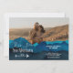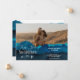 Boho blue mountains new year new adventures script and arrows with your couple photo engagement announcement, Add your initials or monogram.