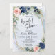 Boho navy and blush eucalyptus and gold frame invitation