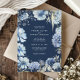 Boho Navy Blue Gold Wildflowers Botanical Wedding Invitation